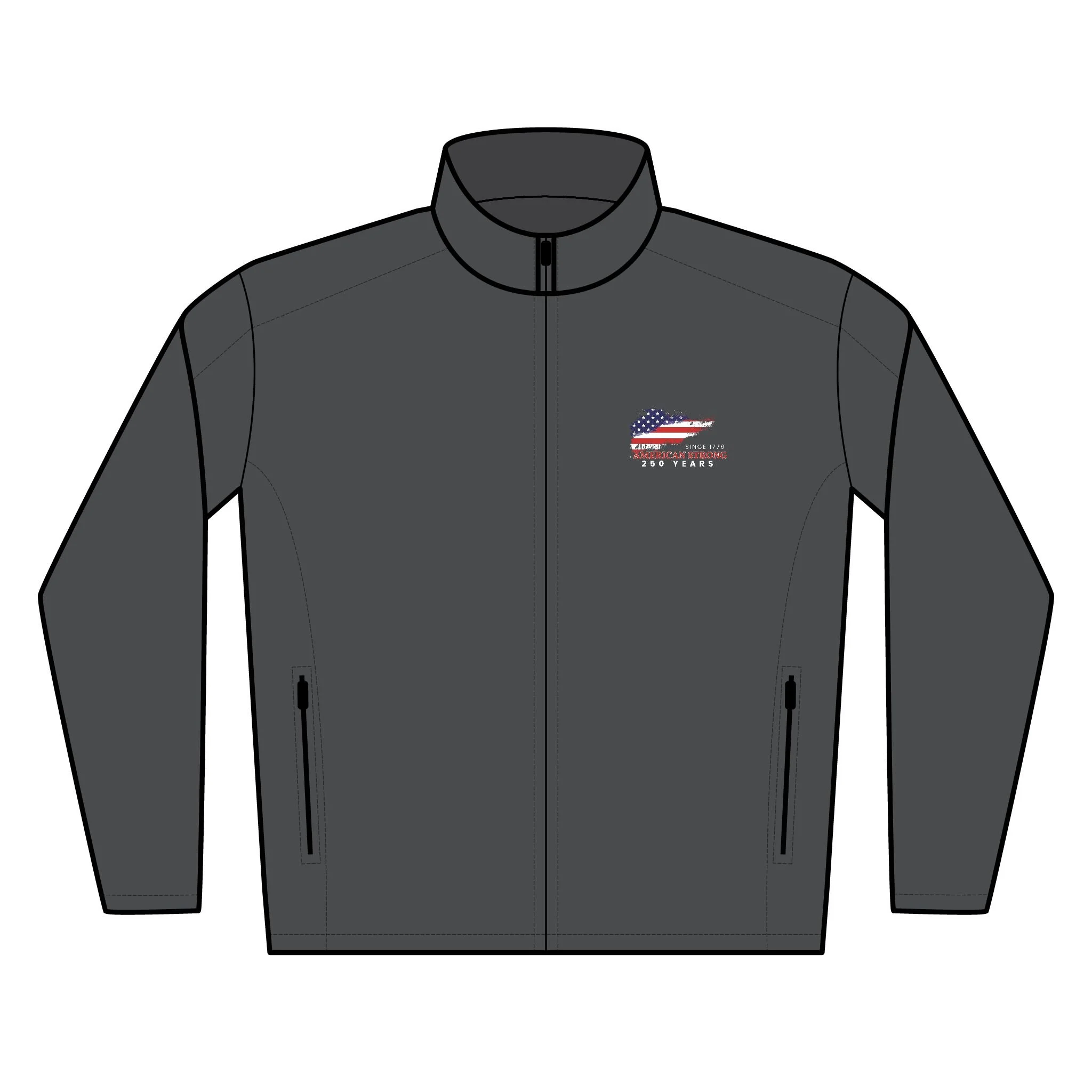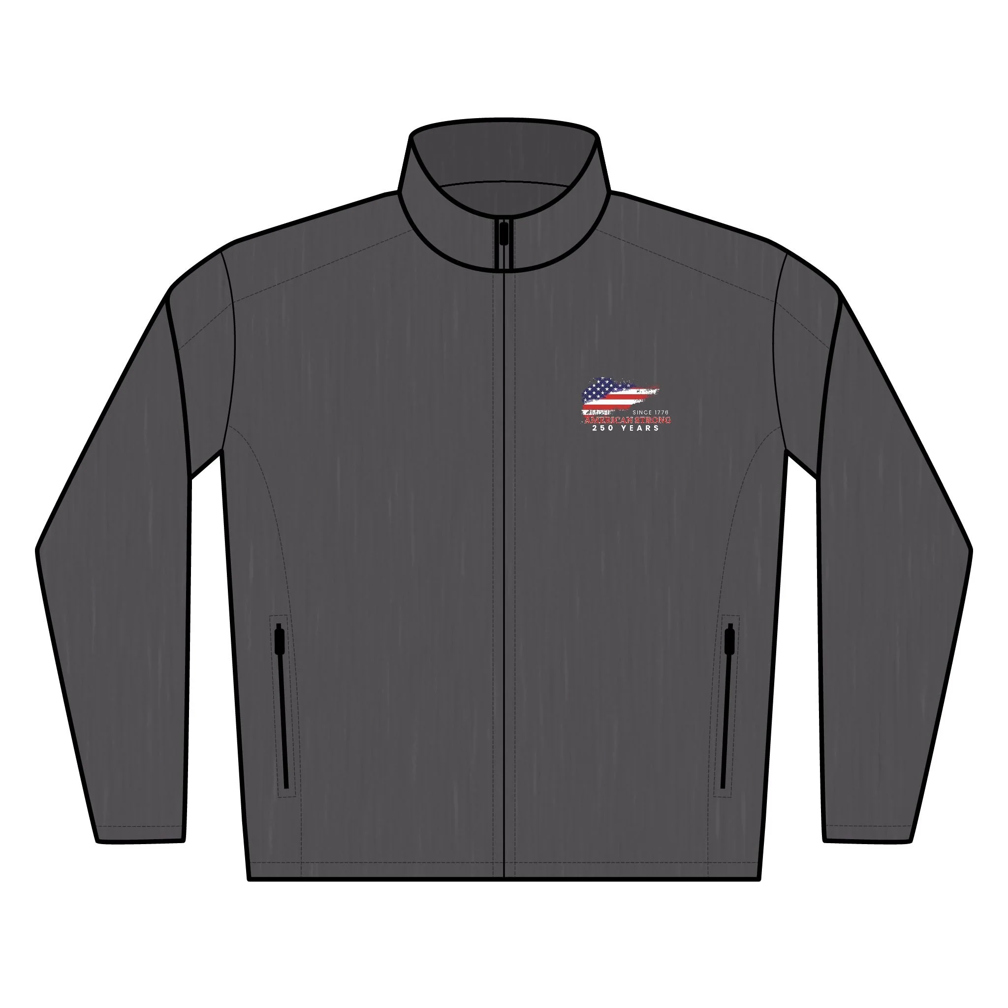 A refined soft-shell jacket designed for active days and everyday wear. Lightweight yet protective, it cuts the wind and sheds light rain while keeping movement easy. The clean cadet collar and smooth zip-through front create a streamlined silhouette that layers well over tees or under heavier coats. Zippered front pockets secure essentials on the go, and the reverse-coil zippers and chin guard keep comfort and durability top of mind. Subtle embroidered artwork on the chest adds personality without shouting — this jacket moves from commuting to trailhead with calm confidence.
